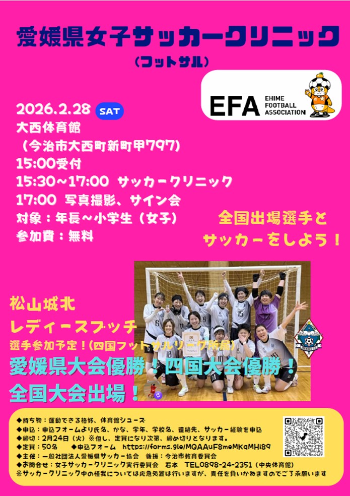 愛媛県女子サッカー(フットサル)クリニック | 大会・試合 | 愛媛県サッカー協会
