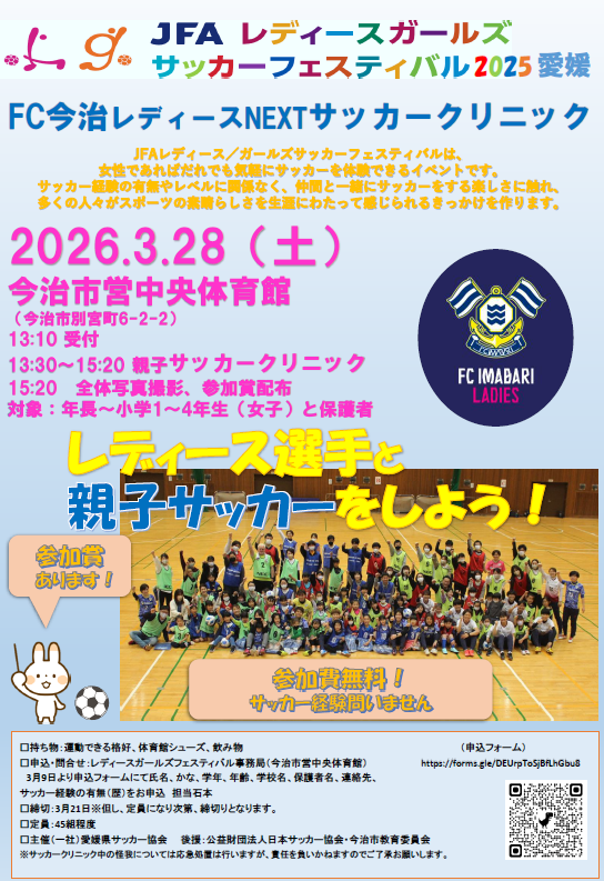 【3/9~参加募集開始】JFA レディース/ガールズサッカーフェスティバル 2025愛媛ーFC今治レディースNEXTサッカークリニックー